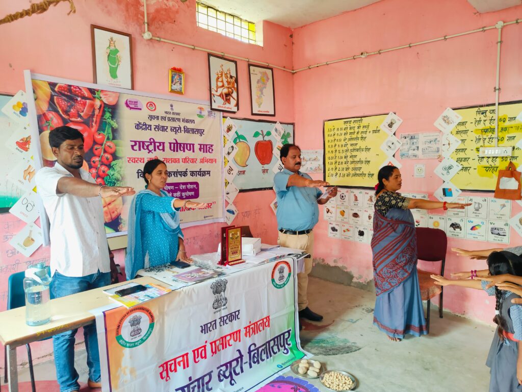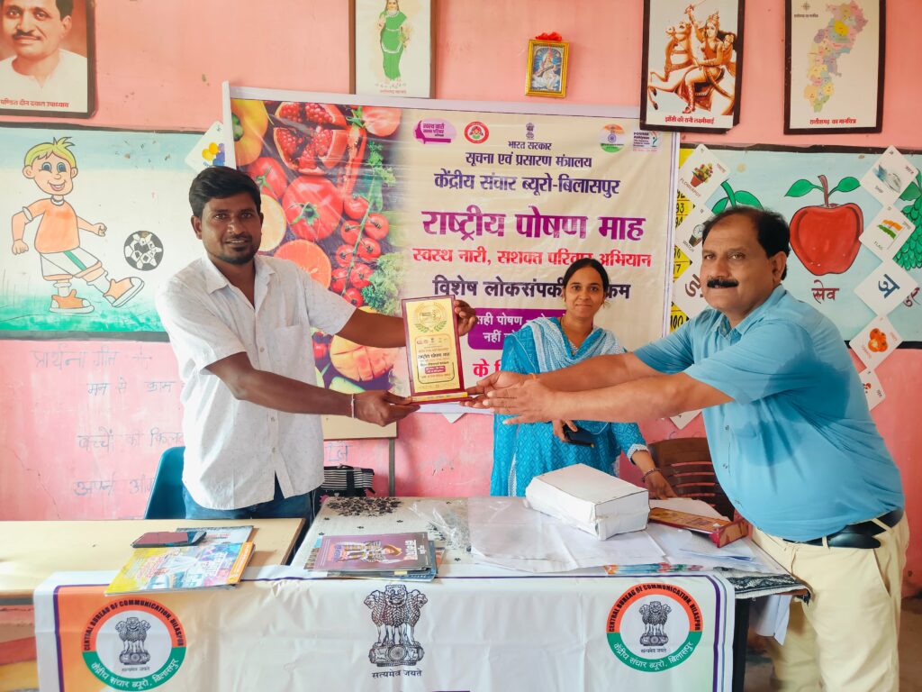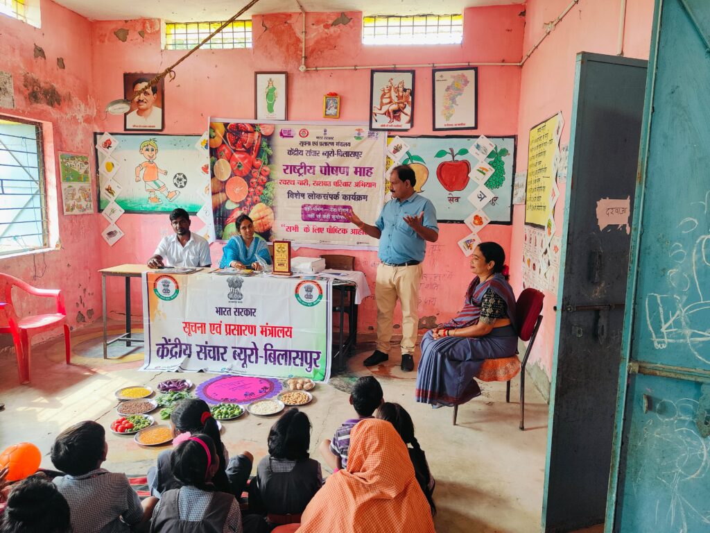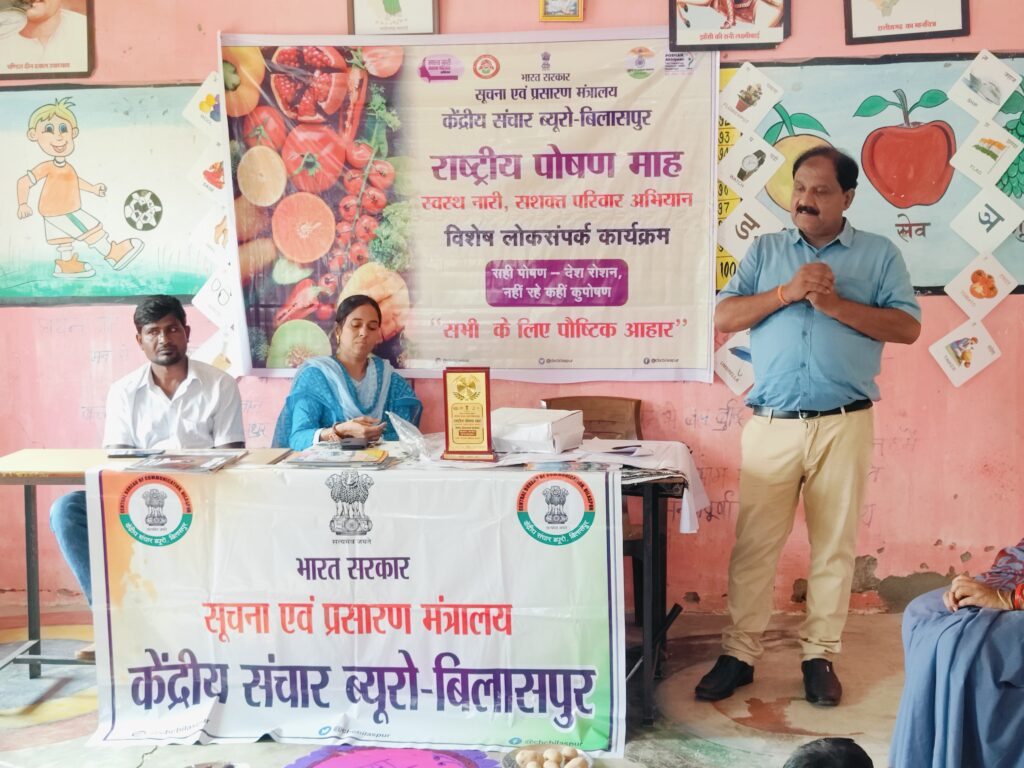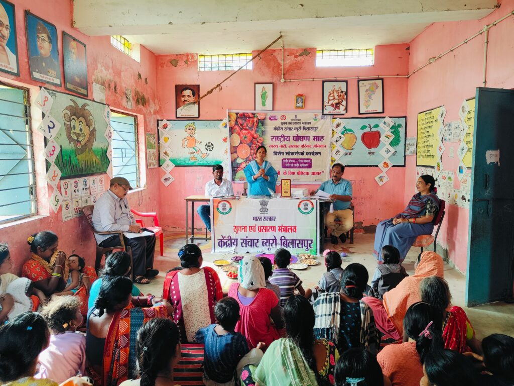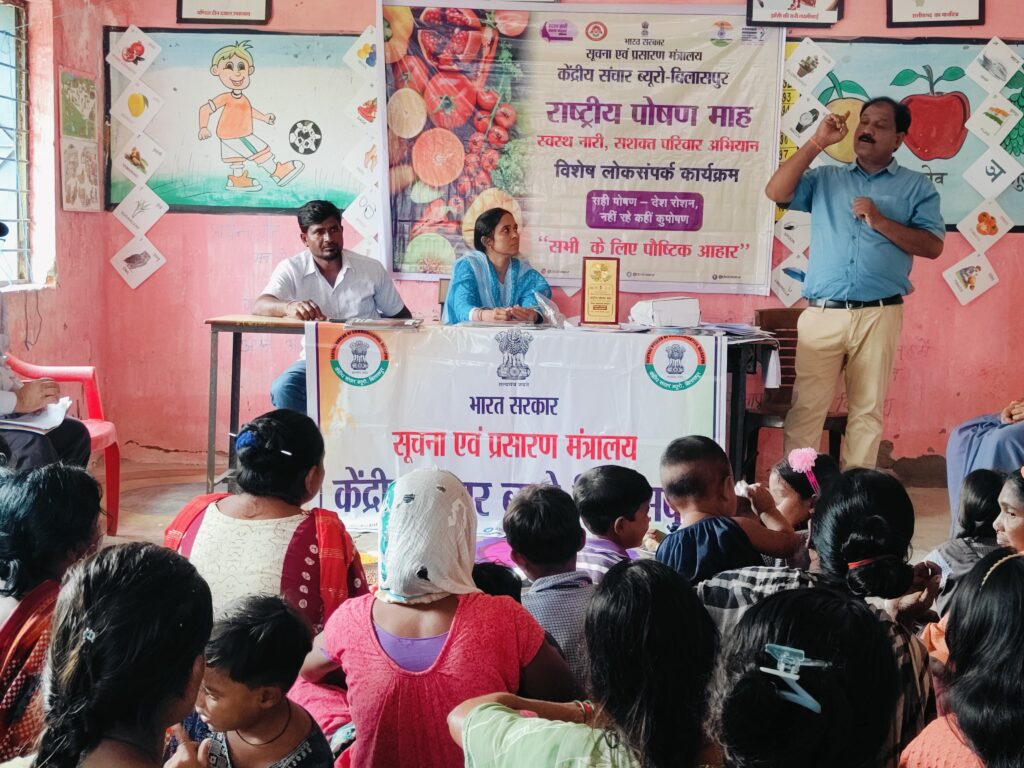 Raipur chhattisgarh VISHESH केंद्रीय संचार ब्यूरो, बिलासपुर द्वारा राष्ट्रीय पोषण माह के अवसर पर एक दिवसीय समेकित लोक संपर्क कार्यक्रम का आयोजन कोटा विकासखंड के आदिवासी बहुल ग्राम जंजीराडीह में किया गया। कार्यक्रम में ग्राम सरपंच रमेश गोआड़ा, पंच मीना गोआड़ा, वरिष्ठ शिक्षिका नीलोफर तबस्सुम, आंगनबाड़ी कार्यकर्ता बसंती गोआड़ा, गर्भवती एवं शिशुवती माताएँ, किशोरी बालिकाएँ तथा बड़ी संख्या में स्थानीय ग्रामीण उपस्थित रहे। कार्यक्रम की अध्यक्षता ग्राम सरपंच रमेश गोआड़ा ने की।