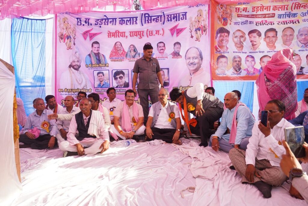 Raipur chhattisgarh VISHESH रायपुर 12 अप्रैल, सांसद एवं वरिष्ठ भाजपा नेता श्री बृजमोहन अग्रवाल रविवार को छत्तीसगढ़ डड़सेना कलार सिन्हा समाज द्वारा आरंग विधानसभा क्षेत्र के ग्राम सेमरिया में आयोजित मंडल स्तरीय वार्षिक सम्मेलन में शामिल हुए। इस अवसर पर उन्होंने समाज की एकजुटता, सेवा भाव और संगठन की शक्ति पर जोर दिया।