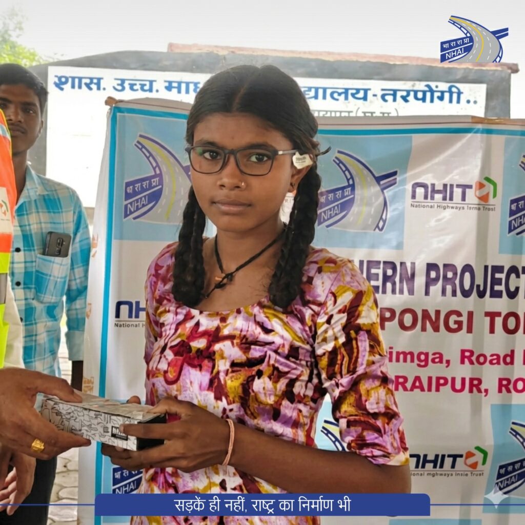 Raipur chhattisgarh VISHESH भारतीय राष्ट्रीय राजमार्ग प्राधिकरण (National Highways Authority of India) के क्षेत्रीय कार्यालय, रायपुर ने सामाजिक सरोकारों को सुदृढ़ करते हुए शासकीय उच्चतर माध्यमिक विद्यालय, तरपोंगी में विद्यार्थियों को निःशुल्क पावर युक्त चश्मों का वितरण किया। यह पहल सड़क सुरक्षा अभियान के अंतर्गत की गई, जिसका उद्देश्य केवल सुरक्षित यातायात ही नहीं, बल्कि भावी पीढ़ी के समग्र विकास को भी सुनिश्चित करना है।