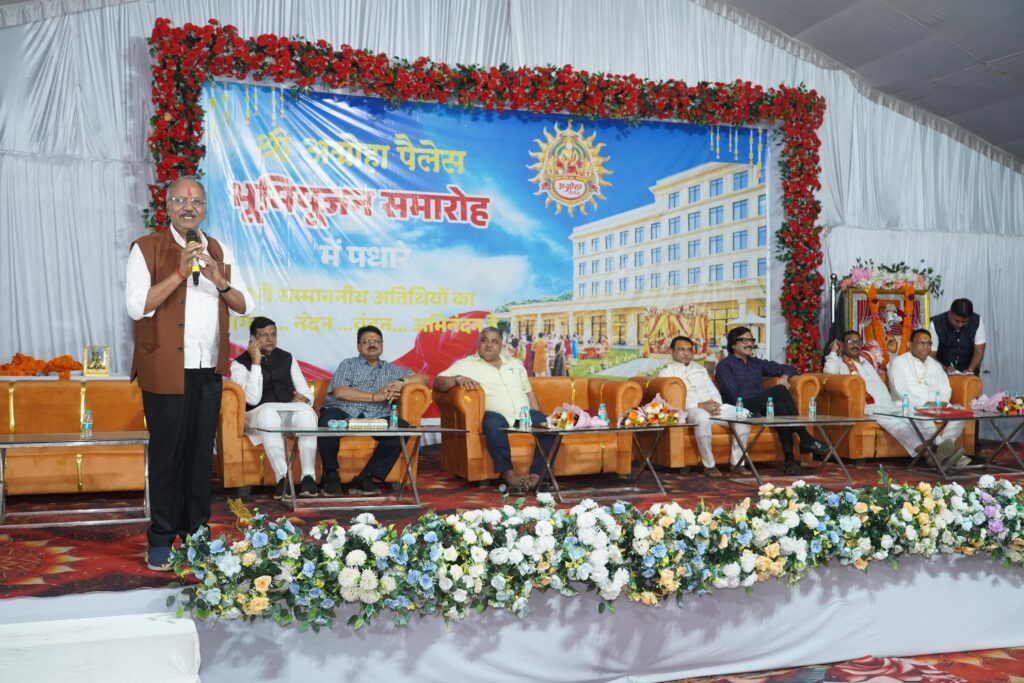 नई पीढ़ी को संस्कारों से जोड़ने की जरूरत — अग्रोहा पैलेस भूमिपूजन पर सांसद बृजमोहन अग्रवाल बोले