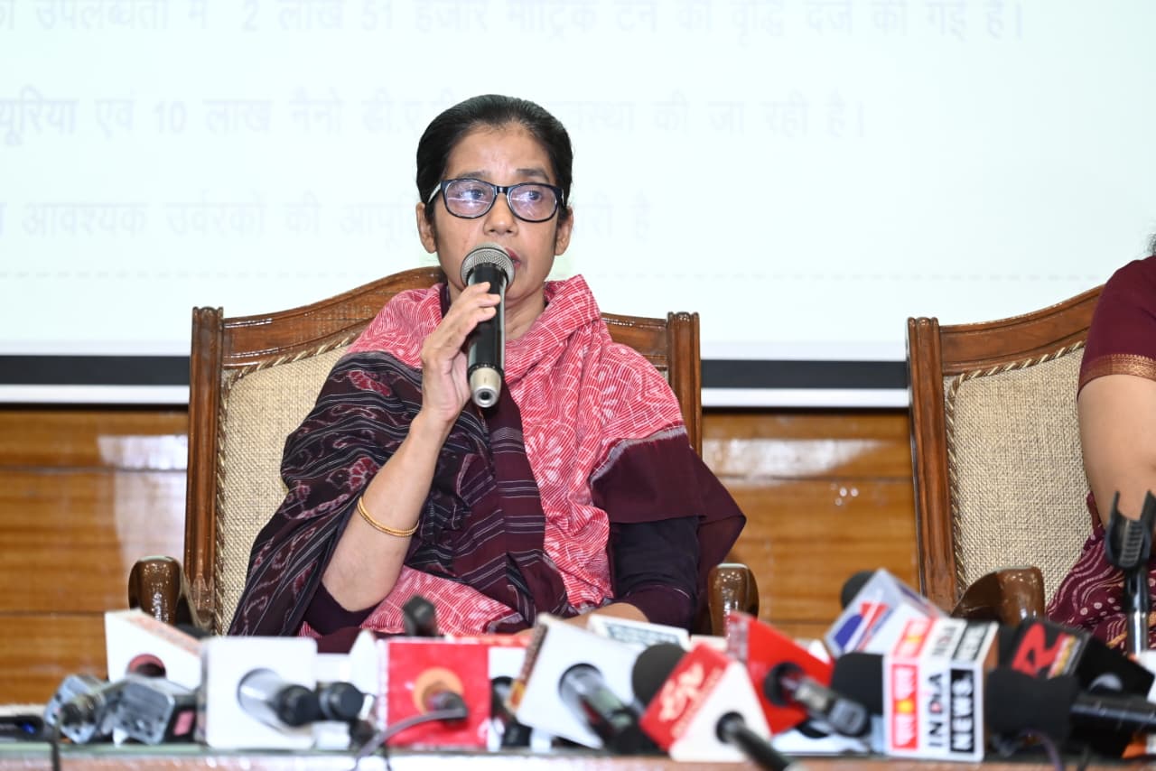 रायपुर : प्रमुख सचिव, कृषि विभाग, श्रीमती शहला निगार एवं संचालक खाद्य एवं आपूर्ति,डॉ फरिहा आलम सिद्दीकी तथा Oil Companies के अधिकारी आज स्थानीय सर्किट हाउस मं पत्रकार वार्ता को सम्बोधित करते हुए।
