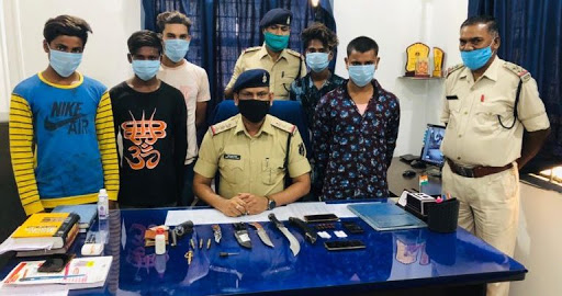 मामले कि जानकारी देते हुए उरला थाना प्रभारी अमित तिवारी ने बताया कि थाना क्षेत्र अंतर्गत सिंघानिया चौक का है जहां मुखबिर से मिली सूचना के आधार पर पुलिस ने आज प्रातः 6:30 बजे घेराबंदी कर चार बालिक सहित एक नाबालिग आरोपी को गिरफ्तार किया है। आरोपी बंद कंपनी में डकैती डालने जा रहे थे जिनके पास से एक देशी कट्टा,तीन जिंदा कारतूस, दो मोबाइल सहित बटनदार चाकू ,स्टील धारदार चाकू, खुखरीनुमा चाकू व गुप्तनुमा चाकू भी जप्त किया गया है। पुलिस ने बताया कि आरोपी युवक अपाचे व सीडी डीलक्स मोटरसाइकिल से जा रहे थे, मुखबिर ने सूचना दी थी कि उनके पास कट्टा और चाकू है शायद किसी बड़ी घटना को अंजाम देने जा रहे हैं।
