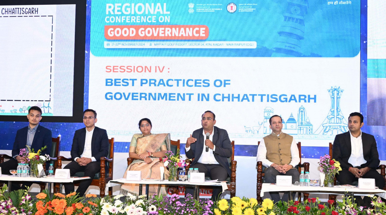 शासकीय कार्यप्रणाली में सुशासन को बढ़ावा देने के उद्देश्य से नवा रायपुर में दो दिवसीय क्षेत्रीय सम्मेलन का आयोजन किया गया। आज दूसरे और अंतिम दिन राज्य के विभिन्न विभागों और देशभर के ज़िलों में किए गए सुशासन प्रयासों को दो सत्रों के आयोजन में सभी से साझा किया गया। इस सम्मेलन में भारतीय प्रशासनिक सेवा के अधिकारियों ने अपने अपने कार्य क्षेत्र में सुशासन लाने के लिए किए गए नवाचारों और विभिन्न कार्यप्रणालियों की जानकारी दी ।