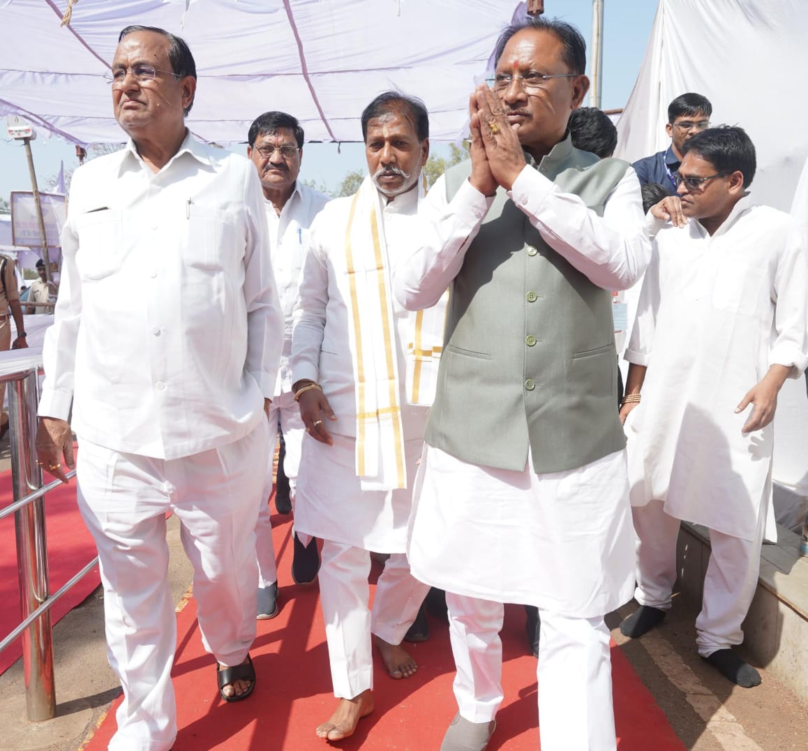 रायपुर 4 मार्च/मुख्यमंत्री श्री विष्णु देव साय ने गिरौदपुरी धाम में आयोजित गुरुदर्शन मेला के पहले दिन गुरु गद्दी का दर्शन एवं पूजा-अर्चना कर प्रदेशवासियों की खुशहाली और समृद्धि की कामना की।